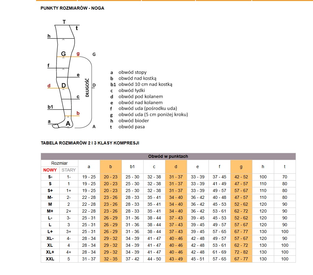 Mecanismul de acțiune al unui ciorap medical de compresie se bazează pe exercitarea unei compresii specifice în zona gleznei membrului inferior, care scade treptat spre inimă. Compresia în zona gleznei, unde circumferința se măsoară la punctul b (a se vedea tabelul de mărimi), este cea mai mare și atinge valori de 23-32 mmHg.
