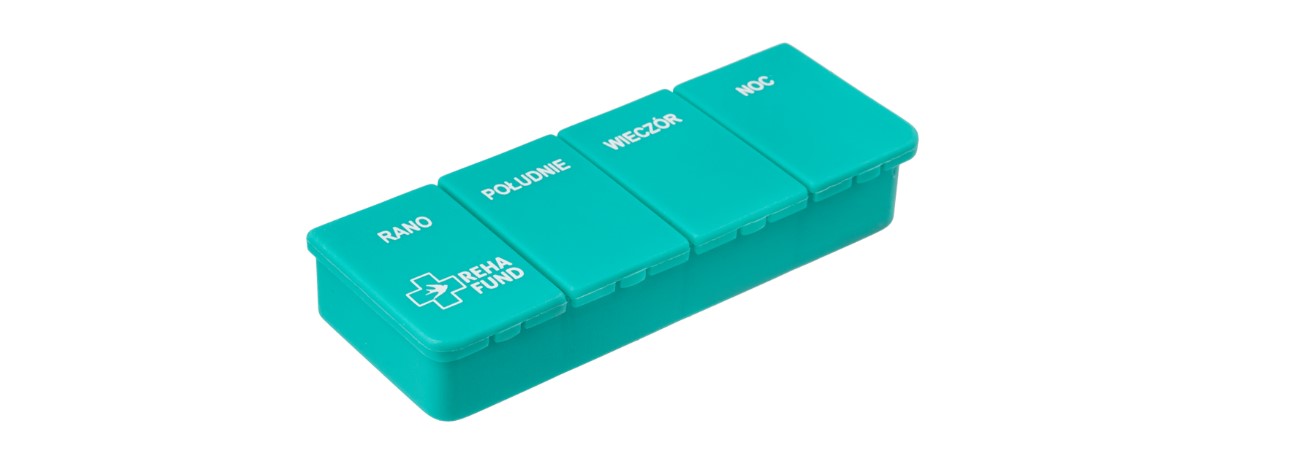 Caseta pentru medicamente RF-352 este o soluție convenabilă pentru separarea porțiilor de medicamente. Aceasta facilitează gruparea și distribuirea medicamentelor în conformitate cu instrucțiunile medicului. Nu este doar convenabilă, ci și o soluție sigură. Este potrivit în special pentru persoanele în vârstă, persoanele ocupate și oricine are probleme cu regularitatea. Dozatorul a fost împărțit în patru compartimente cu o semnătură: dimineața, la prânz, seara și noaptea, astfel încât este recomandat pentru persoanele care trebuie să ia patru porții de medicamente în timpul zilei și al nopții. O închidere convenabilă cu clic fixează comprimatele și capsulele care se află în interior. Cutia pentru medicamente RF-352 este fabricată dintr-un material durabil. De asemenea, este extrem de la îndemână și poate fi ținută la îndemână în orice moment. Recipientul se potrivește cu ușurință într-un rucsac sau într-o geantă de mână și, prin urmare, este potrivit nu numai pentru utilizarea acasă și în spital, ci și pentru muncă, școală sau călătorii.