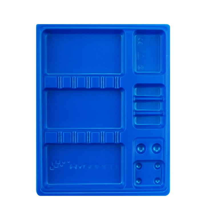 Cutie robustă și practică pentru organizarea ușoară a muncii. Tăvițele dentare sunt fabricate din polistiren de înaltă calitate. Acestea au compartimente și mulaje convenabile pentru instrumente precum freze sau aplicatoare și adâncituri pentru lichide, plombe și alte materiale.